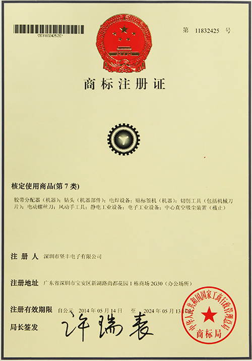 堅豐外觀設計證書:機用型無碳刷電動螺絲刀
